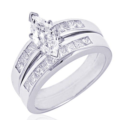 Marquise Diamond Engagement Wedding Rings Set In Channel Setting 14 karat White Gold