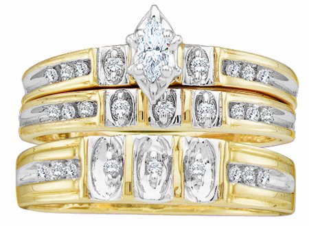 Our Wedding Engagement Trio Bridal Ring Sets are exclusively designed to meet each couples specific needs. Each set is a unique style made with 100% genuine, natural, white diamonds making this an ideal selection for that special occasion. The width of the ladies ring and band combined at its widest point is approximately 6 mm. The center of the ring is raised approximately 7 mm from the band. And the center measures approximately 7 mm in length and 4 mm in width. The man's band measures approximately 5 mm at its widest point. The Women's Ring comes in Size 7. The Man's Ring comes in size 10. These rings are resizable. Please specify when ordering. For Stone and Metal Specifications, please look above at JEWELRY SPECIFICATIONS. This product is available in both yellow and white gold. Please specify when ordering. We offer a 4 Month Warranty on all our products. This covers manufacturer's defects. This warranty DOES NOT cover misuse of product. We send out Appraisal Certificates for all our products for authenticity purposes. For any questions please contact our customer service at: Email: rodeojewelsco@gmail.com Phone: (678) 665-9251. For more products please visit our Storefront at http://www.amazon.com/gp/browse.html?ie=UTF8&marketplaceID=ATVPDKIKX0DER&me=A11RSDIX52RCHQ